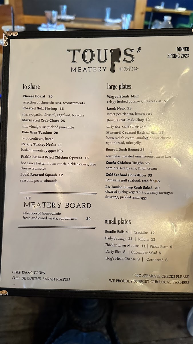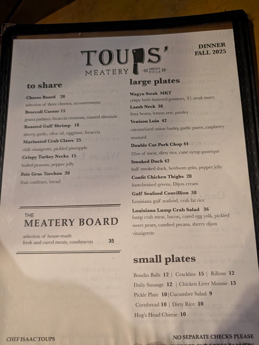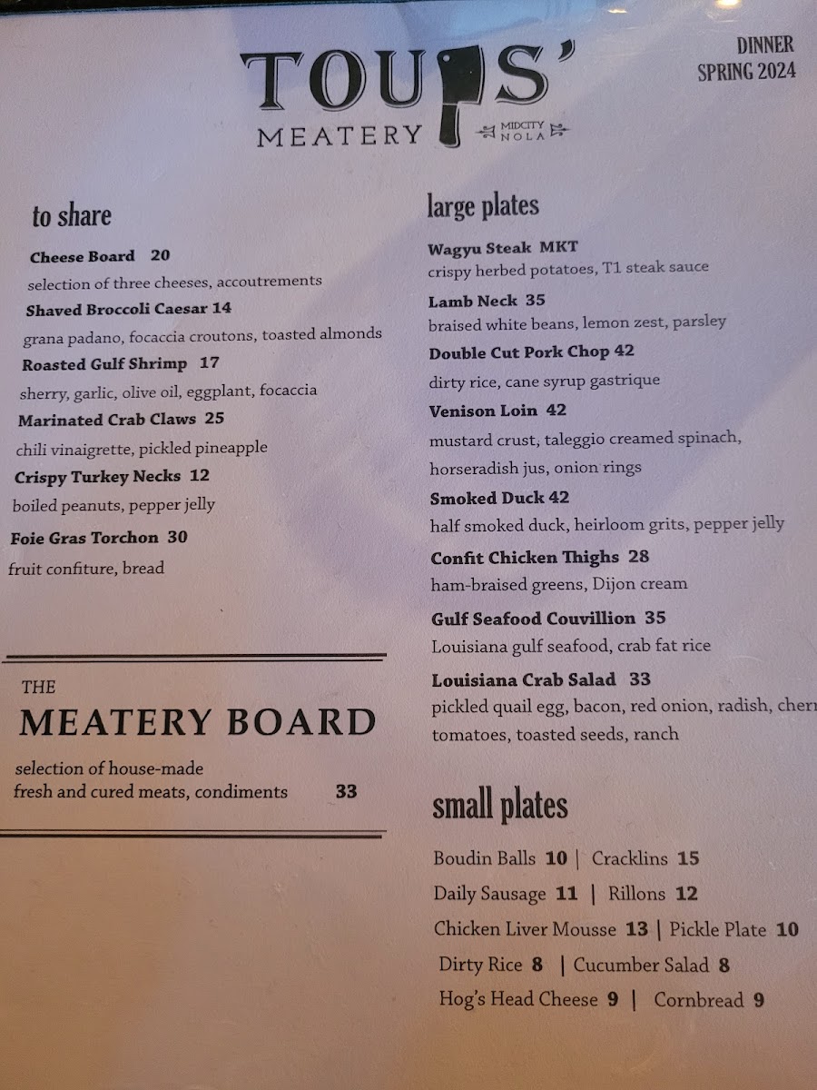 Toups Meatery Menu