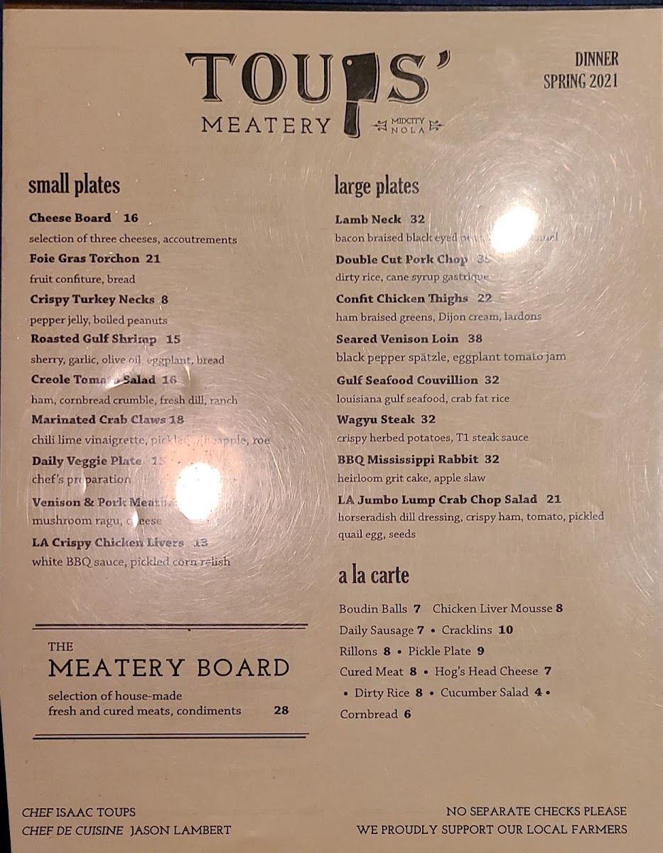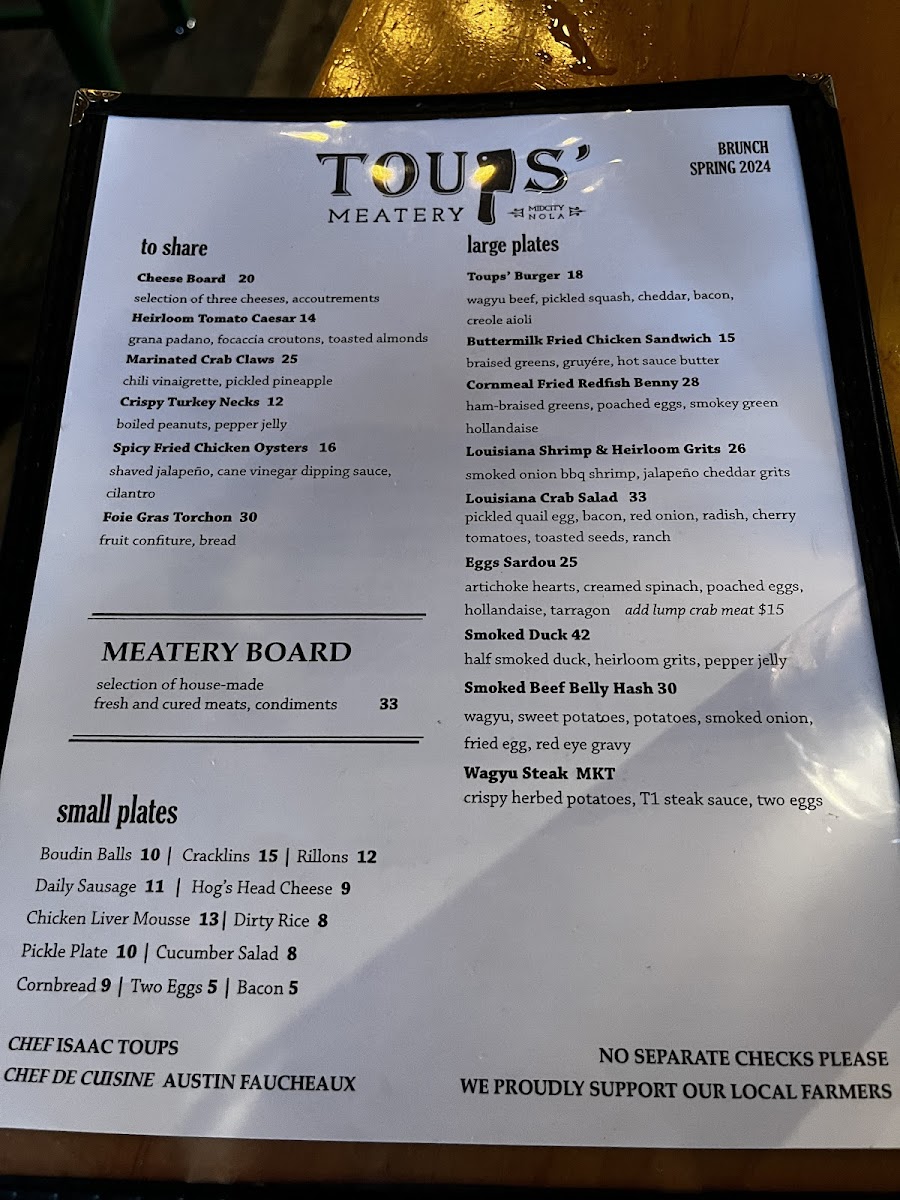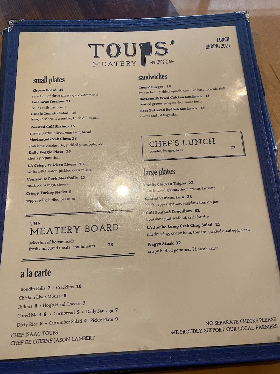 Toups Meatery Menu